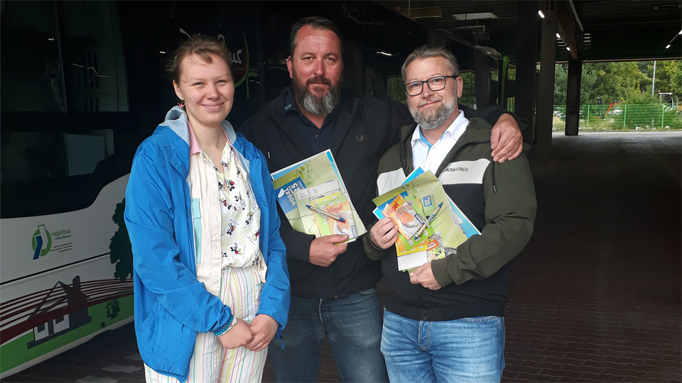 Die Kollegen von regiobus freuen sich schon auf das nächste Jahr mit den kleinen Singvögeln: „Jedes Frühjahr kommen die Rotschwänze und das ist eine immer wiederkehrende Freude für uns“. Und der NABU Brandenburg freut sich über ihr Engagement und bedankte sich mit einer Urkunde und kleinen Geschenken bei den Vogelfreunden Simon Kahlert und Mario Kettler.